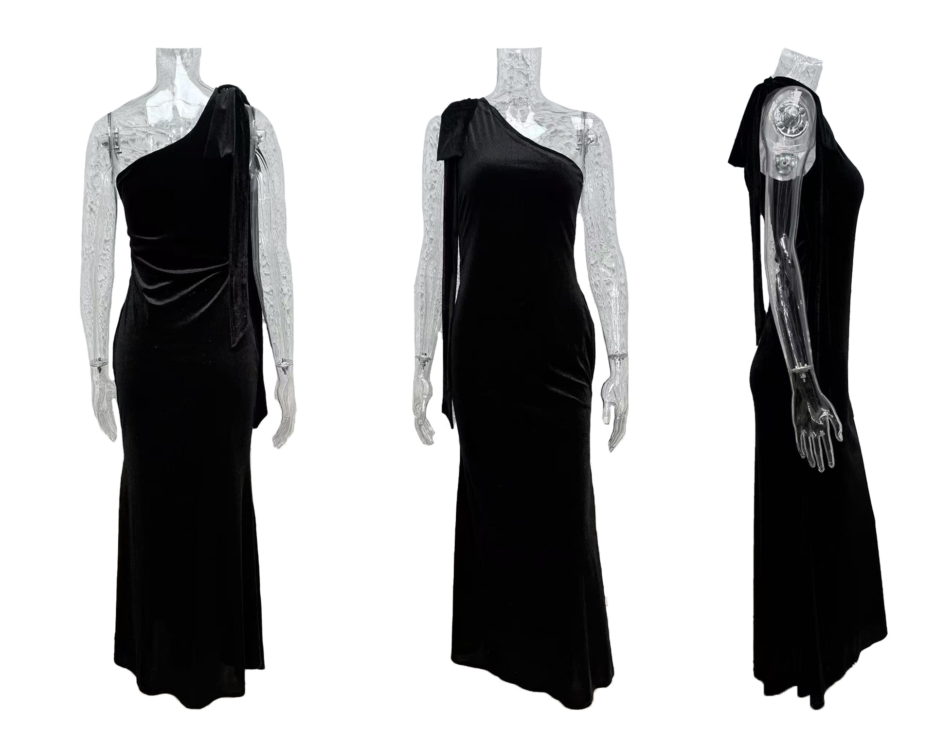 Spring and Summer Women's Solid Color Casual Sexy Slant Shoulder Comfortable Slim Sleeveless Hip Dress