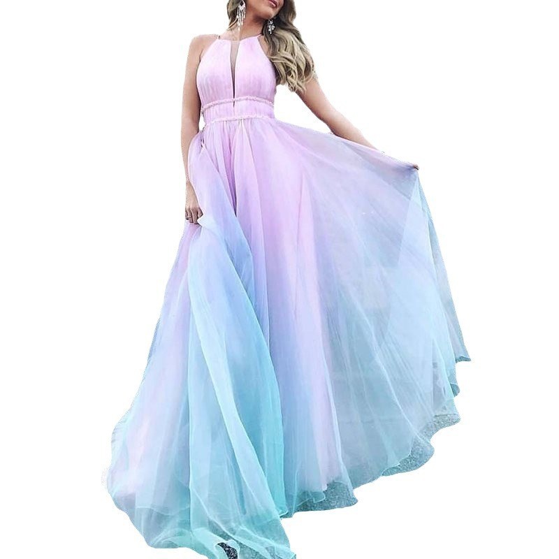 Ombre Halter Neck Tulle Gown: A Dreamy Elegance