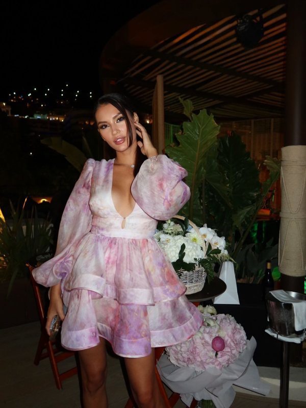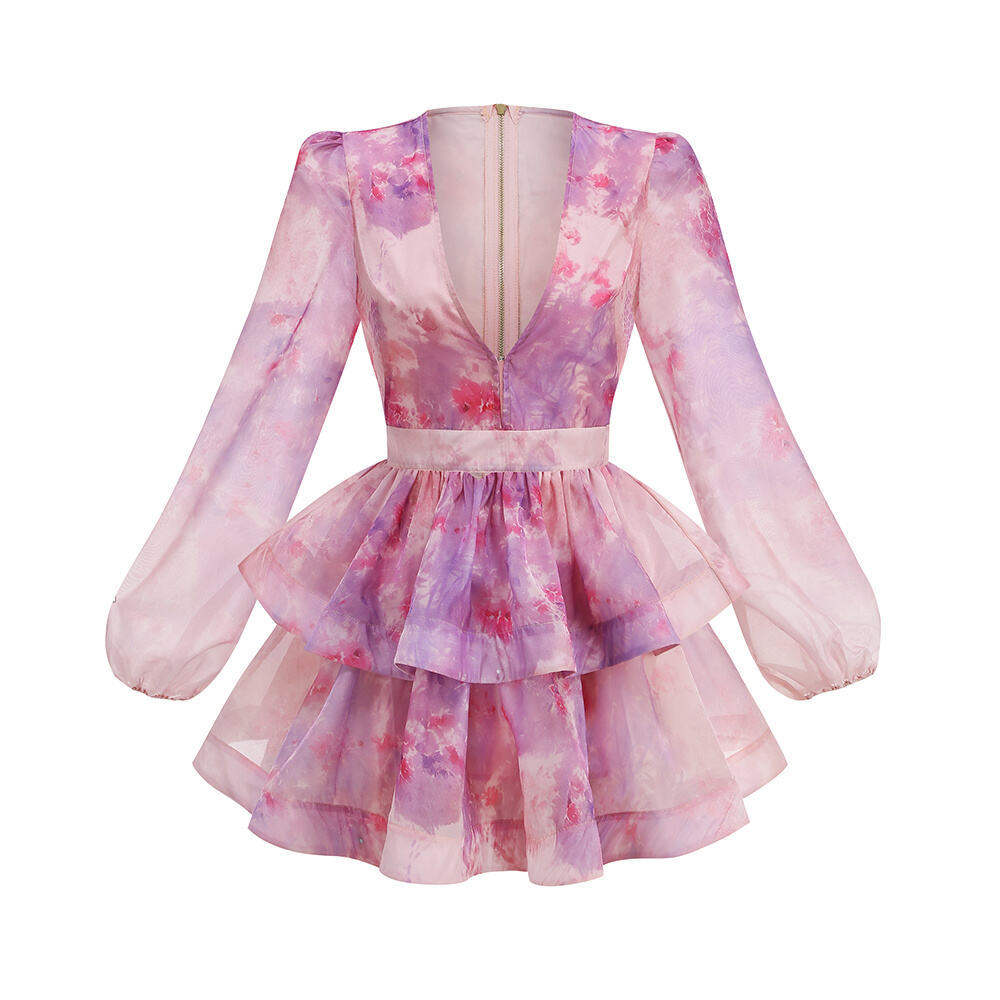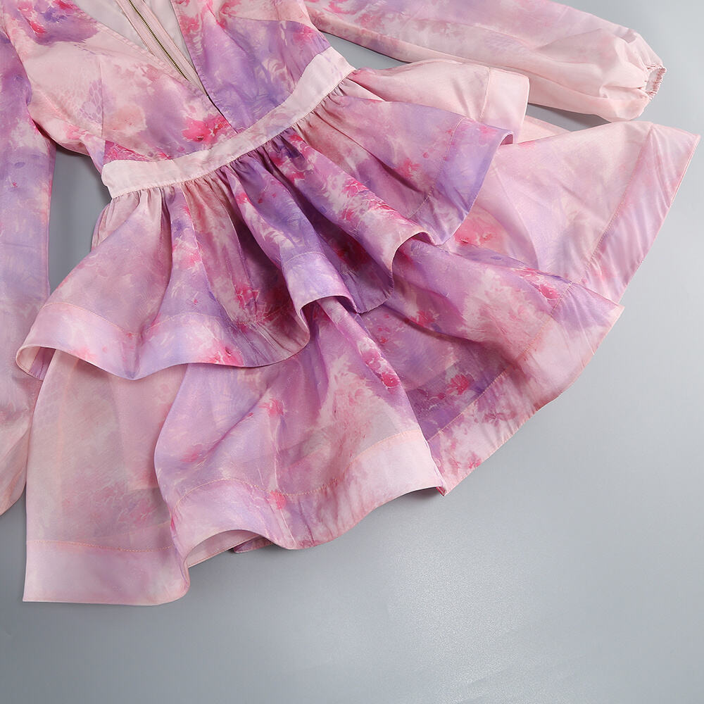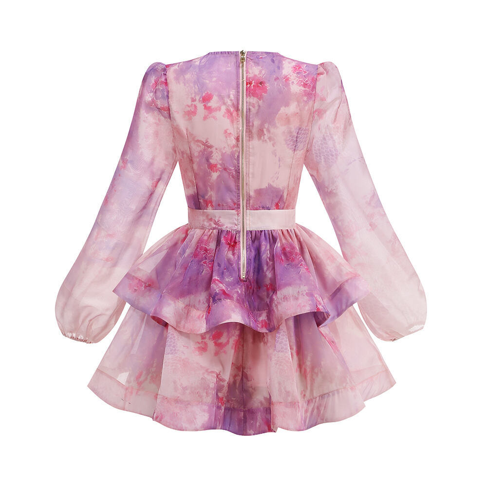 Balloon Sleeve Tiered Mini Dress